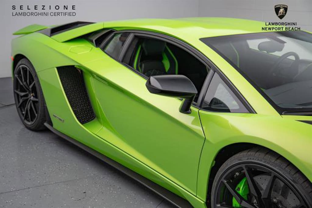 This incredible 2018 Lamborghini Aventador S Coupe is finished in the striking "Verde Ithaca" exterior, a vibrant green that perfectly accentuates its sharp, aerodynamic design, while the cabin is wrapped in luxurious "Nero Ade" leather for a bold and sophisticated contrast. Under the hood lies a naturally aspirated 6.5-liter V12 engine producing an exhilarating 740 horsepower and 507 lb-ft of torque, delivering breathtaking performance and a spine-tingling exhaust note. Blending dramatic styling with raw power, this Aventador S offers a true supercar experience inside and out.This Example Features:20/21-Inch "Dione" Forged Wheels Painted in a Gloss Black FinishGreen Painted Brake CalipersPearl Effect- "Verde Ithaca"Visibility and Light PackageBranding PackageInterior Details in High Gloss BlackTranparent Engine BonnetLamborghini Sound SystemMultifunction Steering WheelContrast StitchingFull Electric and Heated SeatsExterior Carbon Fiber with Style PackageInterior Trim with LeatherMR Suspension + Lifting SystemExterior Details in Carbon FiberSportivo InteriorSide Mirrors in Shiny BlackInterior Carbon Fiber PackagePillars + Windscreen in AlcantaraSelezione Lamborghini Certified Pre-Owned Details:* Vehicle History* Limited Warranty: 12 Month/Unlimited Mile* 150+ Point Inspection* Roadside Assistance* Transferable Warranty* Warranty Deductible: $0All Pre-owned cars bought from us get 25% off our in-house full car PPF and 20% of all other PPF. We buy cars and accept all trade-ins, no matter how cheap or expensive!! For a no obligation offer call, click or stop by. 714-617-9807 or https://www.lambonb.com/sell-my-car-irvine-ca/#form3Please be sure to ask about our Ceramic Coating, Clear Bra, Black Out Packages, Wheel and Tire Packages, Tint, Extended Warranty and Maintenance, Wheel and Tire protection, Windshield and Key replacement packages.Lamborghini's 150-Point Safety Inspection has been completed by our Factory Certified Technicians. We offer available leasing and financing options as well as the Lamborghini Selezione Certified Pre-Owned Warranty and can help arrange transportation worldwide.For further information, please call, e-mail, or visit our world-renowned showroom at 44 Auto Center Drive inside the Irvine Auto Center Monday through Friday 8AM to 5PM and Saturdays 10AM to 5PM. *Please contact dealership for vehicle location. Vehicle may be off premises.*Certified Pre-Owned