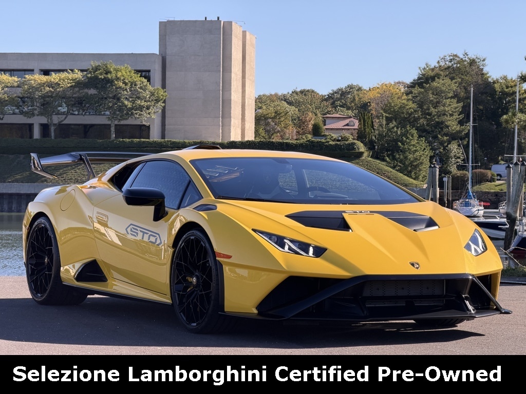 Lamborghini Greenwich is pleased to offer this 2023 Lamborghini Huracan STO with ONLY 427 miles with Lamborghini's 12-Month Authorized Selezione Warranty as well as the Balance of the Factory Warranty. Selezione Lamborghini Certified Pre-Owned is the official program that guarantees total peace of mind and safety for new buyers of pre-owned Lamborghini's. Hand finished in Giallo Inti Metallic Exterior Paint, This STO Interior is Nero Cosmus with Giallo Belenus Alcantara Bicolor SPORTIVO STO Seat Trim.