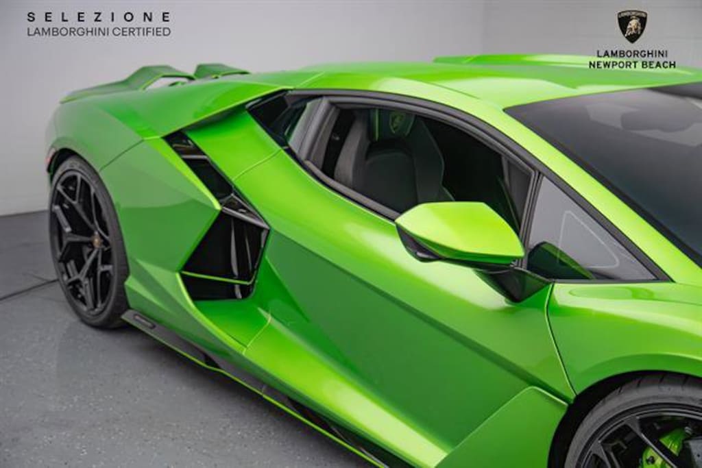 Lamborghini Certified!!This 2024 Lamborghini Revuelto in the striking "Verde Selvans" exterior is a true visual masterpiece, its bold green finish emphasizing the car's sharp, futuristic lines. Beneath the sculpted body lies a 6.5-liter naturally aspirated V12 paired with an advanced hybrid system, producing a staggering 1,001 horsepower, while the "Nero Ade" leather interior delivers a sleek, dramatic contrast that surrounds the driver in unmistakable Lamborghini luxury and performance.This Example Features:21/22-Inch "Altanero" Forged Wheels Painted in a Gloss Black Finish"Verde" Painted Brake Calipers"Verde Selvans" Exterior PaintSeat Belts in "Verde Fauns"Corsa Tex Pack for Unicolor TrimParking PackSteerin Wheel Carbon Package- Corsa TexEngine Frame Inserts on Cofango in Shiny BlackStyle Package- High Gloss BlackLamborghini Rear Logo in Shiny BlackUnicolor Leather Corsa Tex with ContrastFloor Mats with Leather BorderPassenger DisplaySmartphone Interface and ConnectedRim Bolts in TitaniumEngine Grid in TitaniumEmbroidered Lamborghini LogoWindscreen Frame of Front Bonnet in Gloss BlackSelezione Lamborghini Certified Pre-Owned Details:* Vehicle History* Limited Warranty: 12 Month/Unlimited Mile* 150+ Point Inspection* Roadside Assistance* Transferable Warranty* Warranty Deductible: $0All Pre-owned cars bought from us get 25% off our in-house full car PPF and 20% of all other PPF. We buy cars and accept all trade-ins, no matter how cheap or expensive!! For a no obligation offer call, click or stop by. 714-617-9807 or https://www.lambonb.com/sell-my-car-irvine-ca/#form3Please be sure to ask about our Ceramic Coating, Clear Bra, Black Out Packages, Wheel and Tire Packages, Tint, Extended Warranty and Maintenance, Wheel and Tire protection, Windshield and Key replacement packages.Lamborghini's 150-Point Safety Inspection has been completed by our Factory Certified Technicians. We offer available leasing and financing options as well as the Lamborghini Selezione Certified Pre-Owned Warranty and can help arrange transportation worldwide.For further information, please call, e-mail, or visit our world-renowned showroom at 44 Auto Center Drive inside the Irvine Auto Center Monday through Friday 8AM to 5PM and Saturdays 10AM to 5PM. *Please contact dealership for vehicle location. Vehicle may be off premises.*Certified Pre-Owned