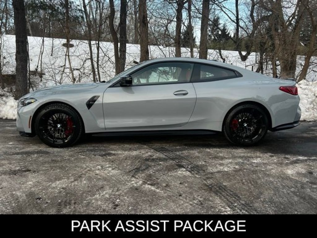The exterior's striking Brooklyn Grey Metallic paint, complemented by the M Shadowline Lights and Carbon Fiber accents, gives this M4 an aggressive and refined appearance. The Executive Package adds a wealth of premium features, including a Harman/Kardon surround sound system, front ventilated seats, and a host of advanced safety and convenience technologies.