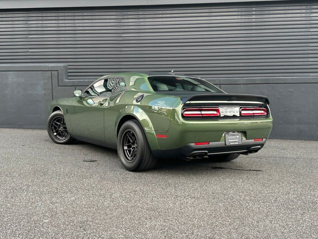 You are looking at a 2023 Dodge Challenger SRT Demon 170. It is a one-owner vehicle with only 407 miles. The options include: 220-MPH Primary Speedometer, SRT Power Chiller, Alcantara Leather Seats, Ventilated Front Seats, Suede Door Trim Panels with Map Pocket, Suede Headliner, Power Multi-Function Mirrors with Manual Fold-Away, Premium-Stitched Dash Panel, Rain-Sensitive Windshield Wipers, Memory for Radio, Driver Seat, and Mirrors, Automatic High-Beam Headlamp Control, Harman Kardon GreenEdge Amplifier, Harman Kardon 18-Speaker Premium Audio with Subwoofer, Trunk-Mounted Subwoofer, Power Tilt/Telescoping Steering Column, Blind-Spot and Rear Cross-Path Detection, Surround Sound Audio System, Brembo 4-Piston Brakes with Yellow Logo, 240MM Rear Axle, Sound Insulation Delete, Air-Grabber Hood, Rear Body Flares, High-Intensity Discharge Headlamps, Satin Black Dodge Tail Lamp Badge, SRT Performance Spoiler, SRT Alcantara Steering Wheel with Red LED Logo, Black Brake Calipers, Real Carbon Fiber Interior Accents, Transbrake, Leather-Wrapped Shift Knob, AutoStick Automatic Transmission, Remote Start System, Tip Start, Steering-Wheel-Mounted Shift Controls, Satin Black Hood, Roof, and Decklid Graphic.