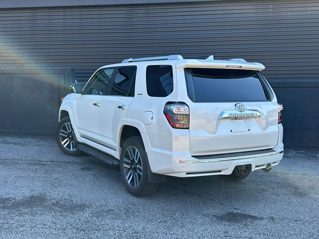 You are looking at a 2018 Toyota 4Runner Limited with 70,105 miles. The options include: Blizzard Pearl, Limited Package, 20" x 7.5" unique dual 6-spoke alloy wheels, P245/60R20 mud and snow tires, leather seat trim, right and left individual air conditioner, heated and ventilated front bucket seats, moonroof with tilt up and slide, Entune Premium JBL audio with navigation, garage door opener, auto-dimming rearview mirror, body color heated mirrors, 50 state emissions, 4.0L V6 DOHC SMPI engine, electronic 5-speed automatic transmission with overdrive, 3.727 axle ratio, 6,300 lbs GVWR, Keep It Wild savings, special color Blizzard Pearl, exhaust tip, mudguards, roof rack cross bars, running boards, cargo net envelope, all-weather floor liners and cargo tray, Black Graphite.